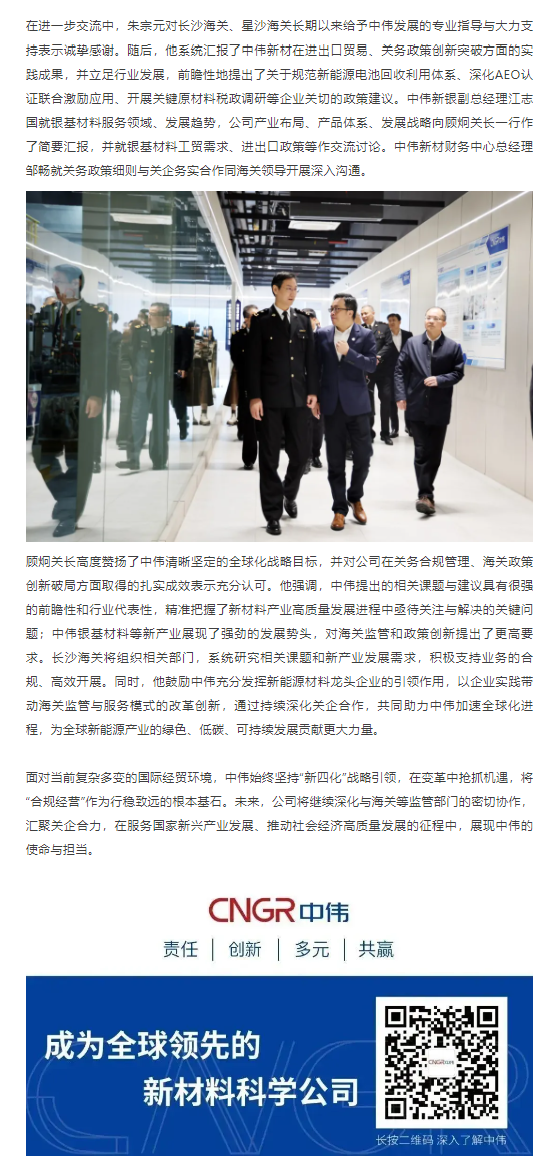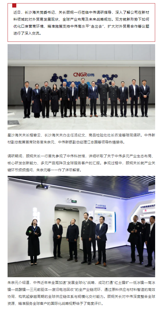 全球化征途上的“关”键力量!长沙海关关长顾炯调研中伟