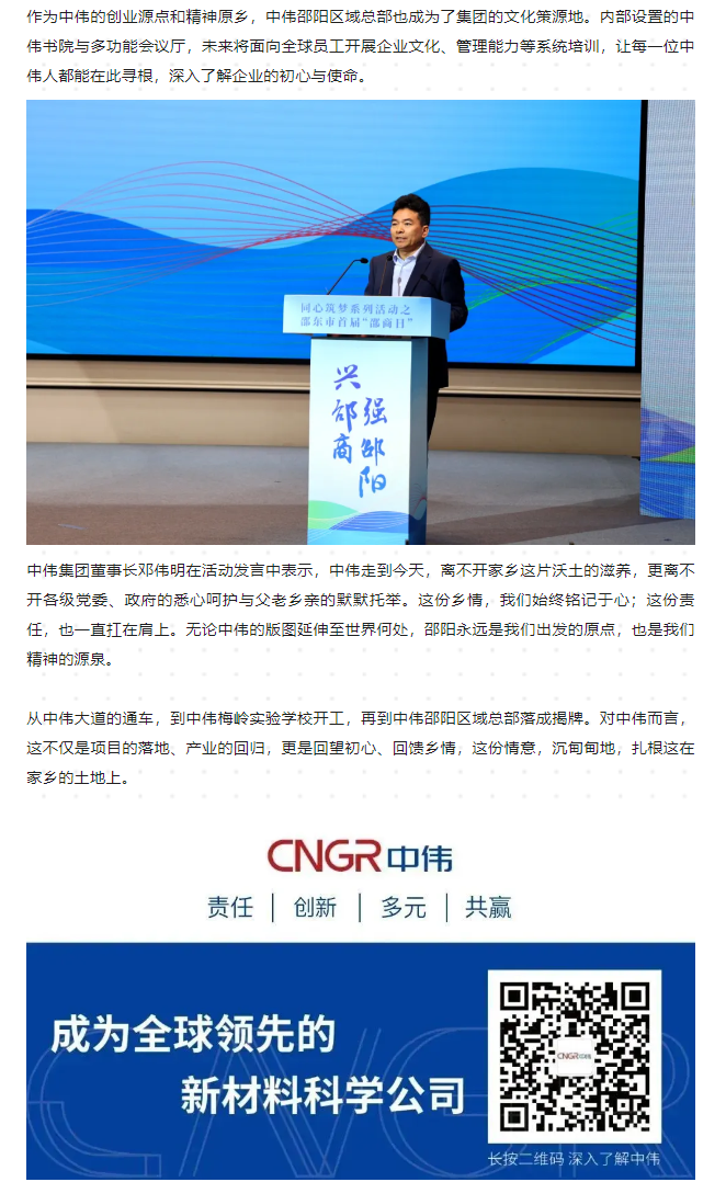 中伟邵阳区域总部正式揭牌:一场持续三十年的“双向奔赴”